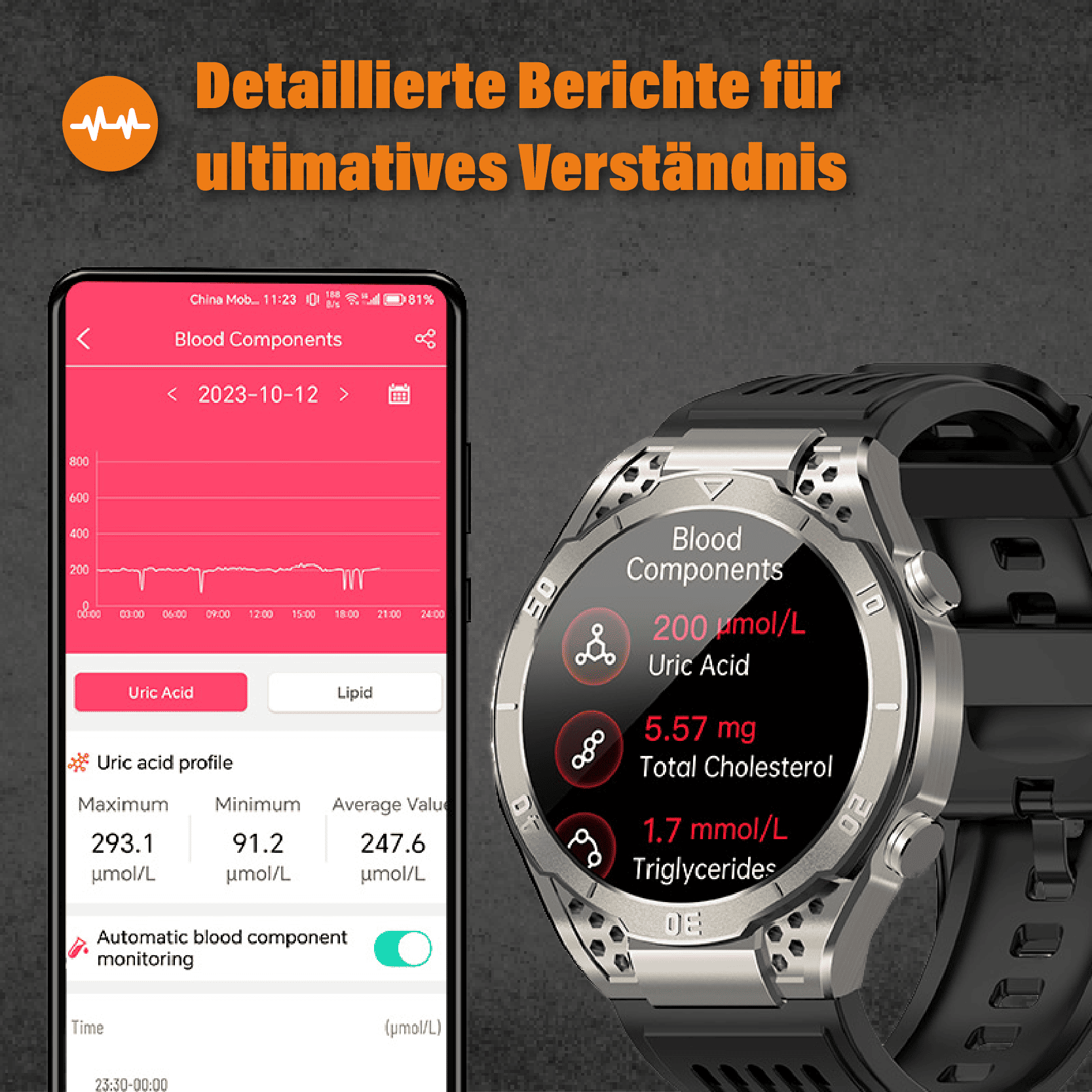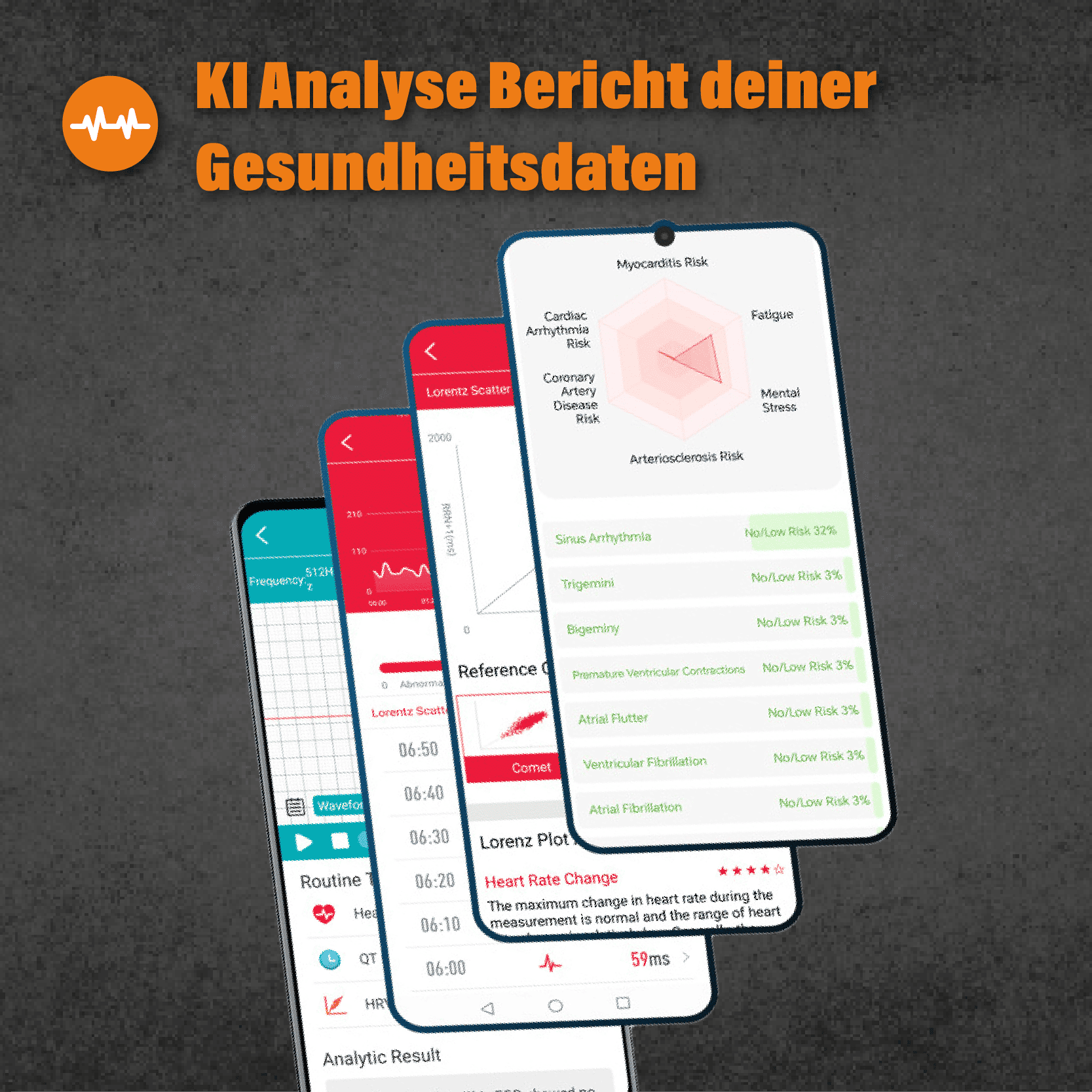 Dank unzähliger Gesundheitsfunktionen wie z.B., EKG Messung, Blutfettwerte Messung, BMI und Body-Mass-Index, Blutdrucküberwachung, Schlafüberwachung und einer umfangreichen Analyse mit modernster KI-Technologie bist Du immer bestens über Deine Gesundheit und deinen Körper informiert.