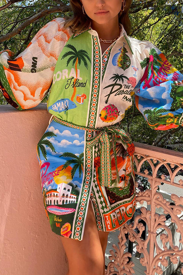Chic Summer Elegance: Fitted Shirtdress with Balloon Sleeves and Self-Tie Belt